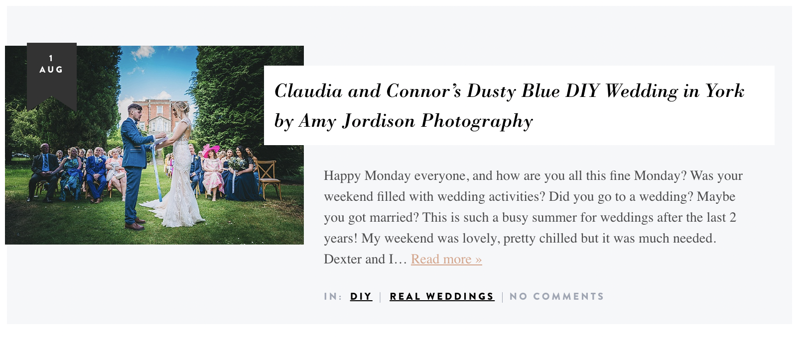 Claudia and Connor’s Aldby Park wedding has been featured on Boho Weddings!